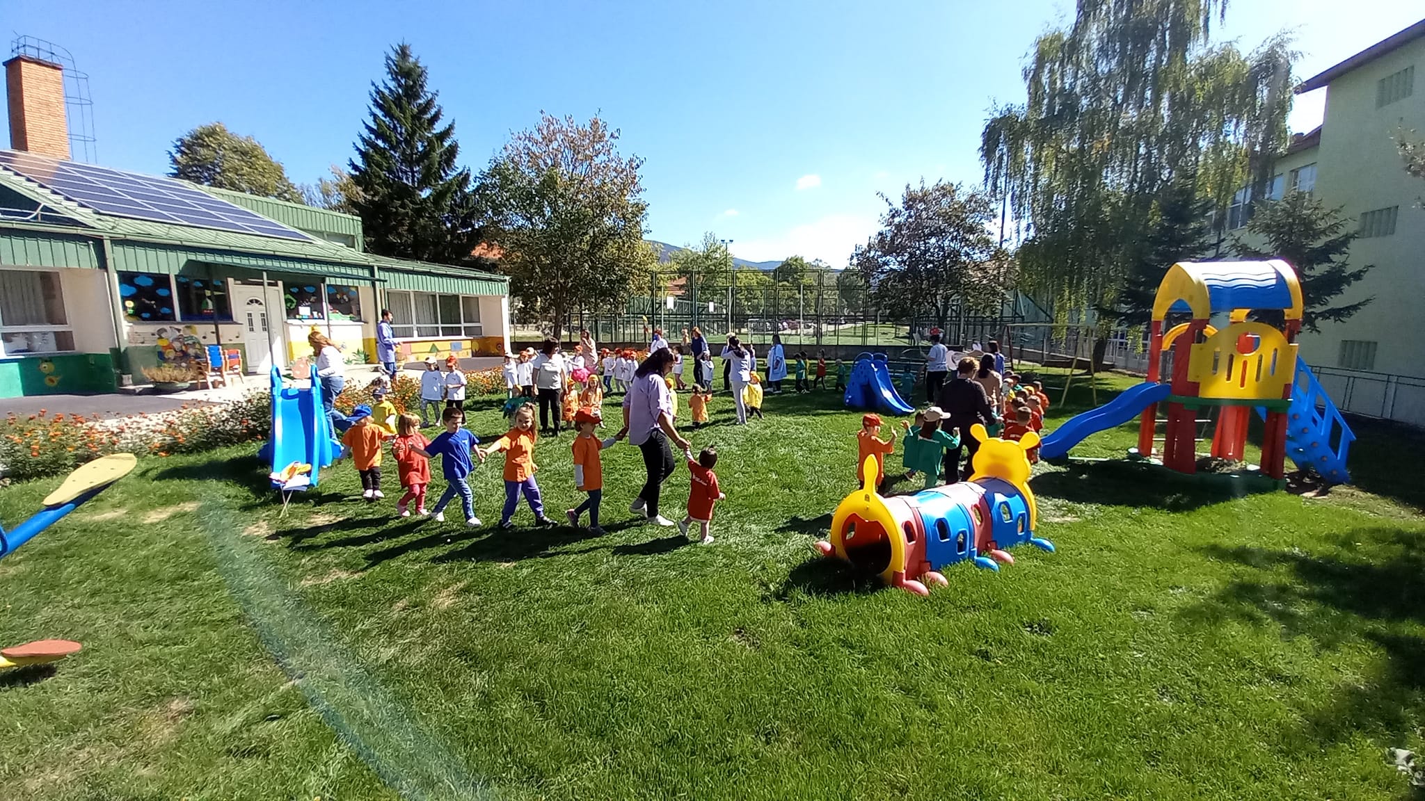 Објектот е наменски изграден и е со вкупна површина 2389 m², а со капацитет од 93 деца. Дворната површина е озеленета и хортикултурно уредена, со цветни алеи и патеки, како и слободен простор за игра на децата, богат со детска опрема и играчки (лулашки, клацкалки). Во институцијата редовно вработени се 28 лица. Со запишани 96 деца во 2021/22, за 2022/23 се предвидува да се запишат уште 10 деца.