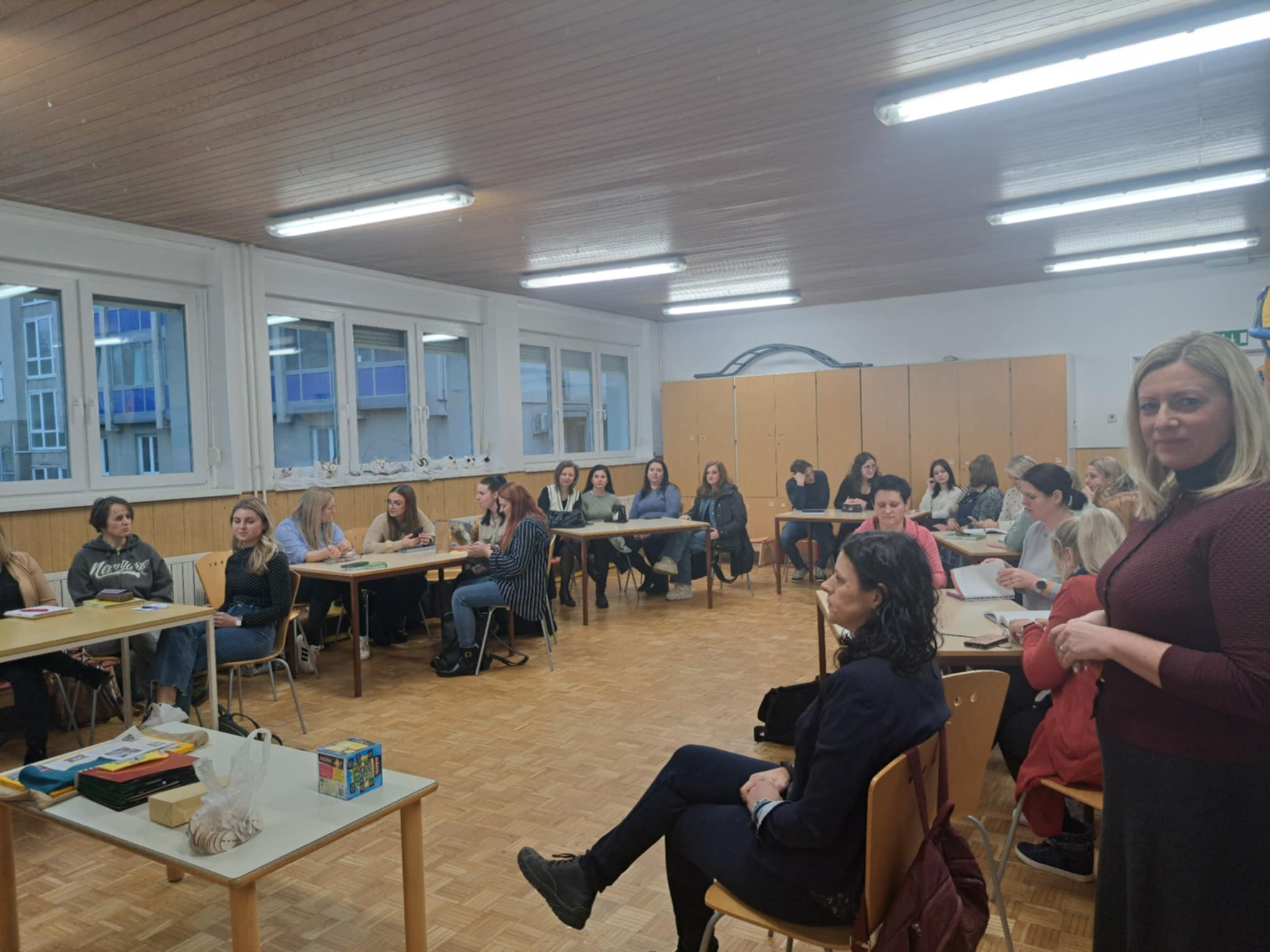Timot vospituvaci i direktorkata pri OJUDG”7Septemvri”-Pehcevo razmenija iskustva preku rabotilnici, nabljuduvanje i evaluacija, so sto postignavme Megunarodna sorabotka.