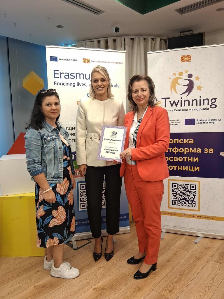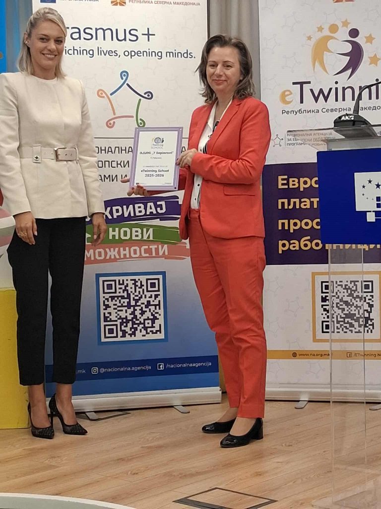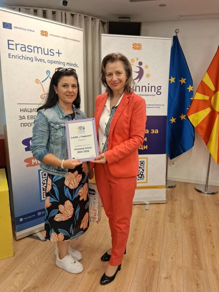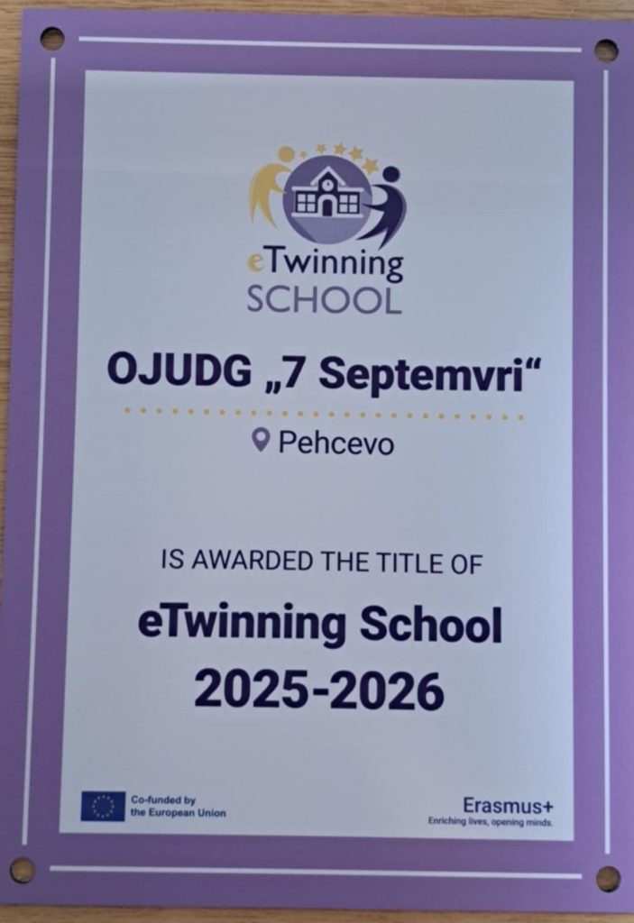 Со гордост споделуваме прекрасна вест за нашата градинка ОЈУДГ „7 Септември“ Пехчево, која по втор пат ја добива престижната ознака eTwinning School 2025 – 2026, како признание за успешното учество и вложениот труд во европски образовни проекти.